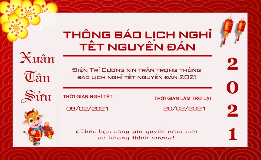 THÔNG BÁO NGHỈ TẾT NGUYÊN ĐÁN TÂN SỬU Kính gửi: Quý Khách hàng, Đối tác!