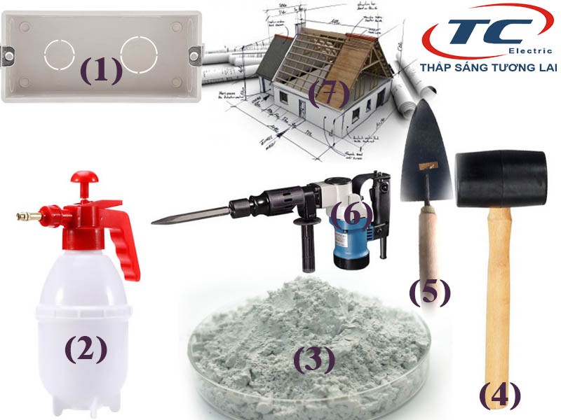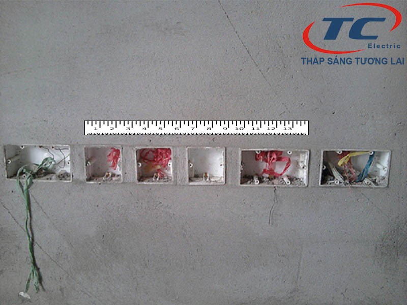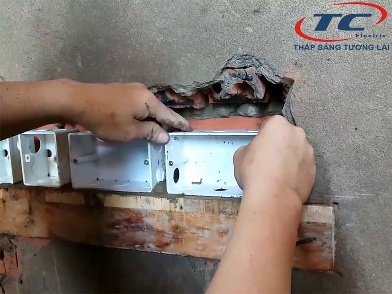 Bước 1: Đo đạc chính xác kích thước của đế âm tường và khoan ( đục ) khoảng trống trên tường theo đúng kích thước của đế âm tường.